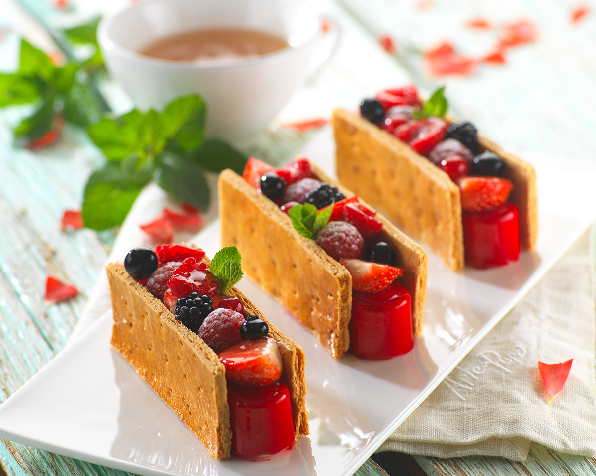 • Garnitures : Apportez des textures, des saveurs et des couleurs à vos créations avec nos fourrages aux fruits, nos garnitures prêtes à l’emploi, nos arômes et nos préparations pour crèmes pâtissières à froid, etc. Ces solutions sont spécialement conçues pour vous offrir des résultats optimaux tout en simplifiant la mise en œuvre de nombreuses recettes qui exigent généralement une longue préparation.